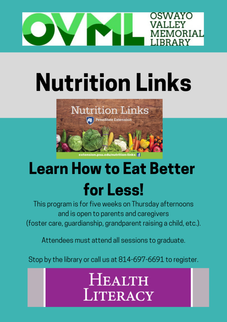 Stop by the library or call us at 814-697-6691 to register.